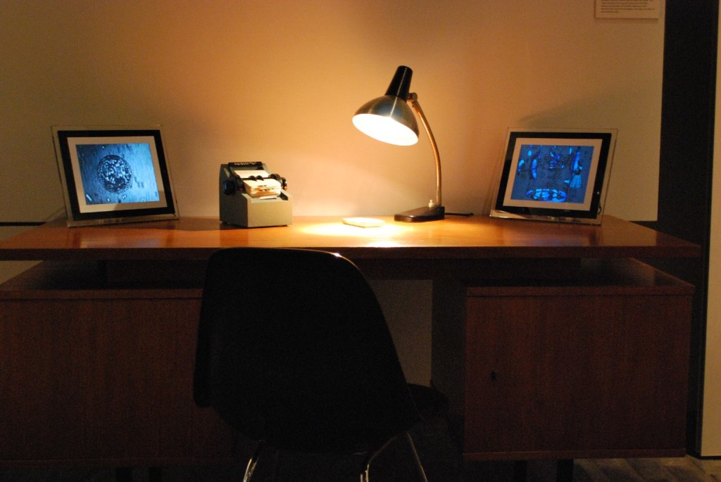 A Commission for the DNA50 anniversary from the Wellcome Trust, this project travelled to Leiden, Haaselt, Gothenburg, and Edinburgh from its original venue: the Biographical Room in the Wellcome Trust Library, Euston Road London. Video from the 1960 Seattle Worlds fair showing a spectacularised set of DNA models was juxtaposed with a rolodex card file which combined fragments from media sources during March 1953 with extracts from the writings and talks of Professor Maurice Wilkins. Wilkins was the quiet and reserved DNA pioneer, whose moral sense led to his key role in the foundation of the BSSRS (British Society for Social Responsibility in Science). In addition, an editioned flickbook using elements from the film was freely available from the library desk. The installation evolved in different venues, with two facing video elements: