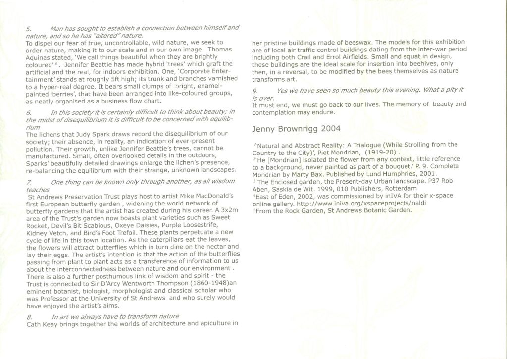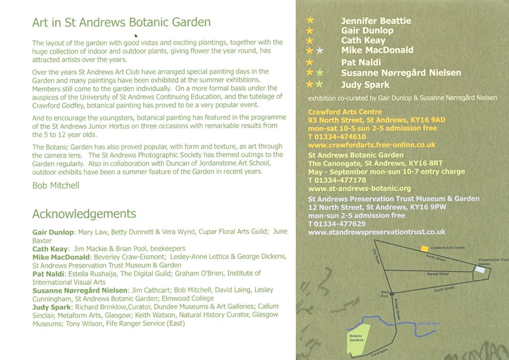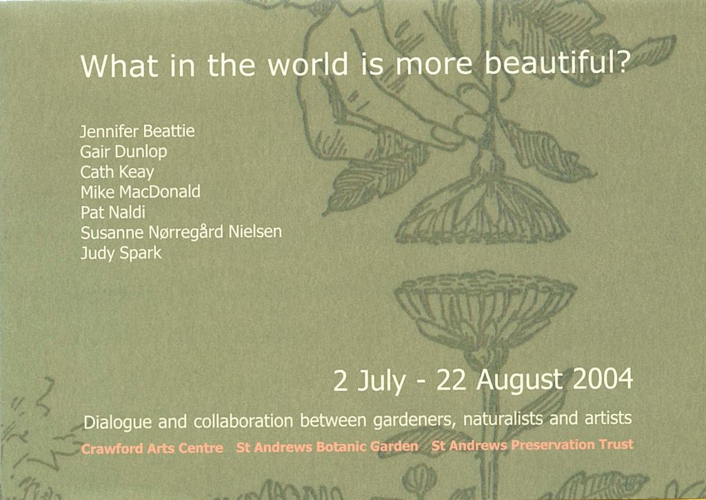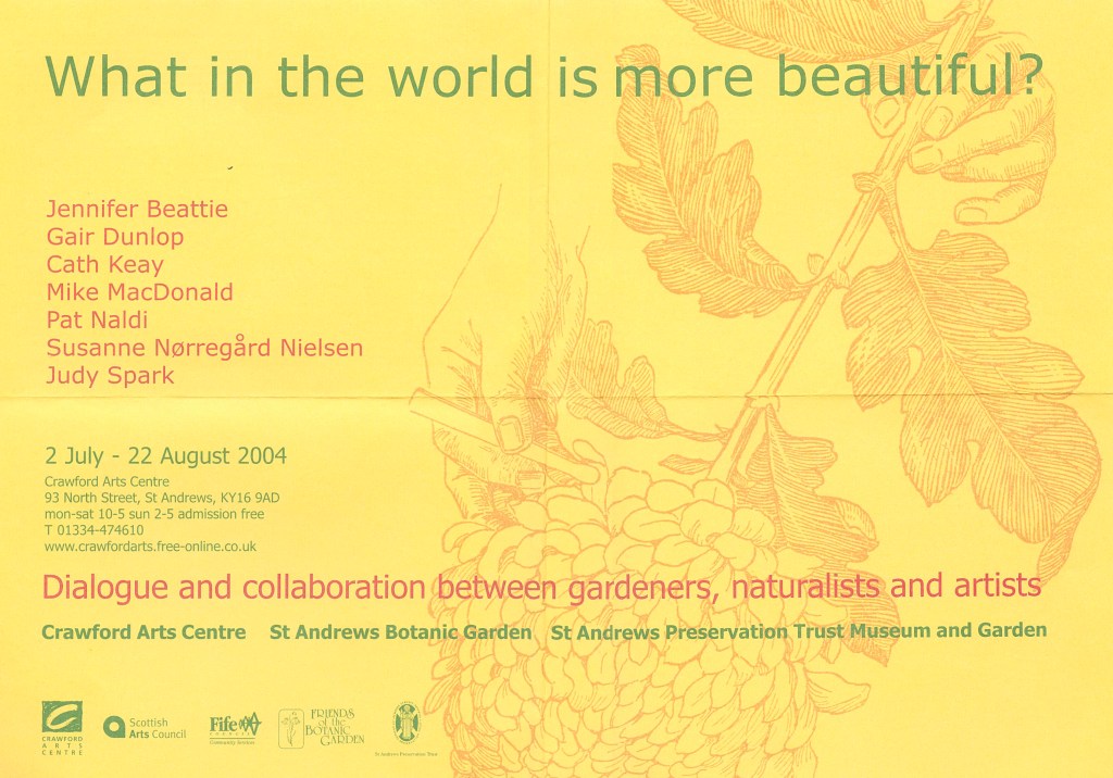 In 2004 at the much-missed Crawford Arts Centre in St Andrews, Gair Dunlop and Susanne Nielsen curated and participated in an exhibition of dialogues and collaborations between artists, naturalists and gardeners.